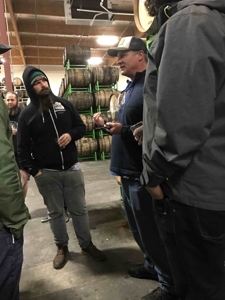 Jeff White, Sierra Nevada’s Barrel Room Guy, educates the group on barrel aging.