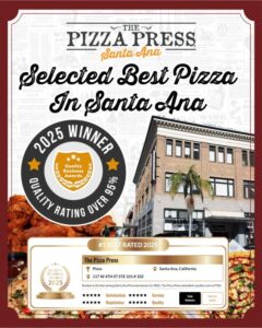 Read MoreThe Pizza Press has officially been awarded Best Pizza in Santa Ana for 2025 by the Quality Business Awards This recognition is a proud moment for our team and a meaningful validation of the consistent hard work, care, and customer first values we live by every day. Our franchise owner, Mimi Mar, shared a heartfelt…